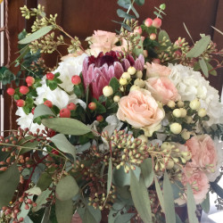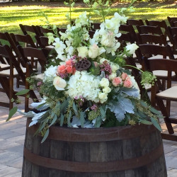 " Since I was a little girl, I've been collecting pictures of my dream wedding - a country backyard wedding. I found the perfect man, and finally after calling three different florists and never hearing back from them, I found the perfect floral designer. My bouquet to the boutonierres and alter arrangements were above and beyond my dreams!  We can't thank you enough."
